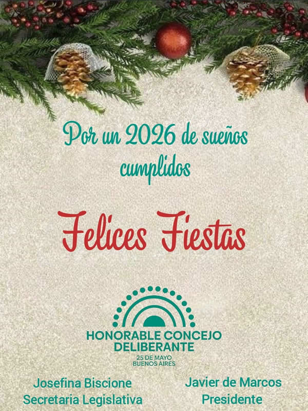 El Honorable Concejo Deliberante de 25 de Mayo convoca a Audiencia Pública a partir del día martes 11 de Noviembre de 2025 hasta el día 13 de Noviembre de 2025 a las 19 hs. a llevarse a cabo en el Honorable Concejo Deliberante, sito en calle 10 y 27 de la ciudad de 25 de Mayo. Con el objeto de conocer la opinión de los vecinos, instituciones y actores vinculados a la organización del Carnaval de 25 de Mayo, respecto de la relocalización del Corsódromo.