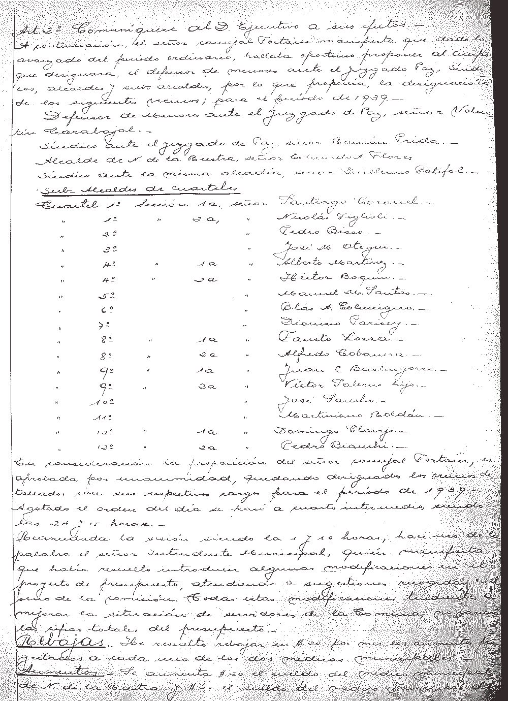 Folio 37 - Luego de un debate, el Concejal Alonso manifiesta que el céntrico emplazamiento de Usina, no dejaba de ser un inconveniente para el vecindario. Sobre todos los temas, la Comisión de Usina se reserva el derecho de replantear el asunto en otra oportunidad. |